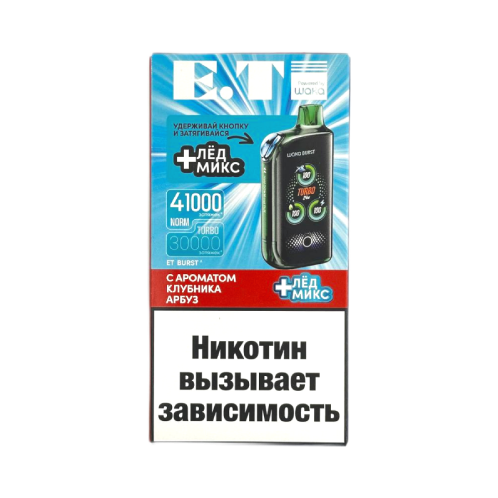 - Купить электронную сигарету WAKA ET Burst 41000 Клубника, Арбуз + Лед Микс в магазине snusmsk Электронная сигарета WAKA ET Burst 41000 с вкусом Клубника, Арбуз + Лед Микс представляет собой идеальное сочетание сладких и сочных ягод с прохладной свежестью ледяного микса. Этот аромат понравится любителям фруктовых и освежающих вкусов, которые ищут баланс между сладостью и охлаждающим эффектом. Устройство гарантирует стабильный и насыщенный вкус на протяжении всего срока работы, что делает каждую затяжку приятной и вкусной. WAKA ET Burst 41000 рассчитана примерно на 41000 затяжек, что обеспечивает длительное использование без необходимости дозаправки или подзарядки. Компактный и удобный дизайн позволяет легко брать электронную сигарету с собой в любое место и использовать в любое время. Благодаря своей простоте и надежности, WAKA ET Burst 41000 станет отличным выбором как для новичков, так и для опытных пользователей. Магазин snusmsk предлагает купить электронную сигарету WAKA ET Burst 41000 Клубника, Арбуз + Лед Микс по выгодной цене с гарантией качества и быстрой доставкой по всей России. Покупая у нас, вы получаете оригинальный продукт с насыщенным вкусом и удобством использования. Выбирайте качество и надежность в магазине snusmsk.